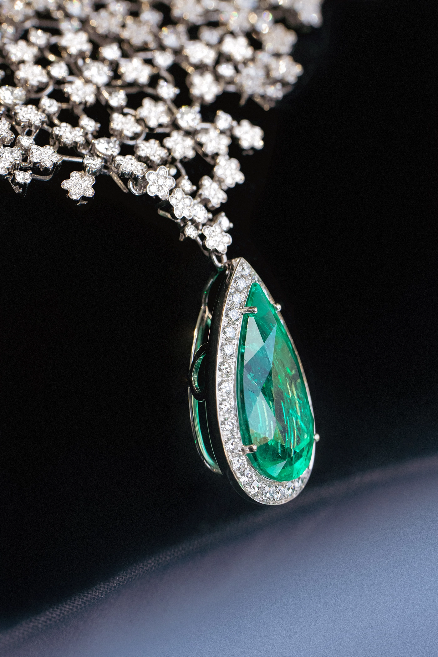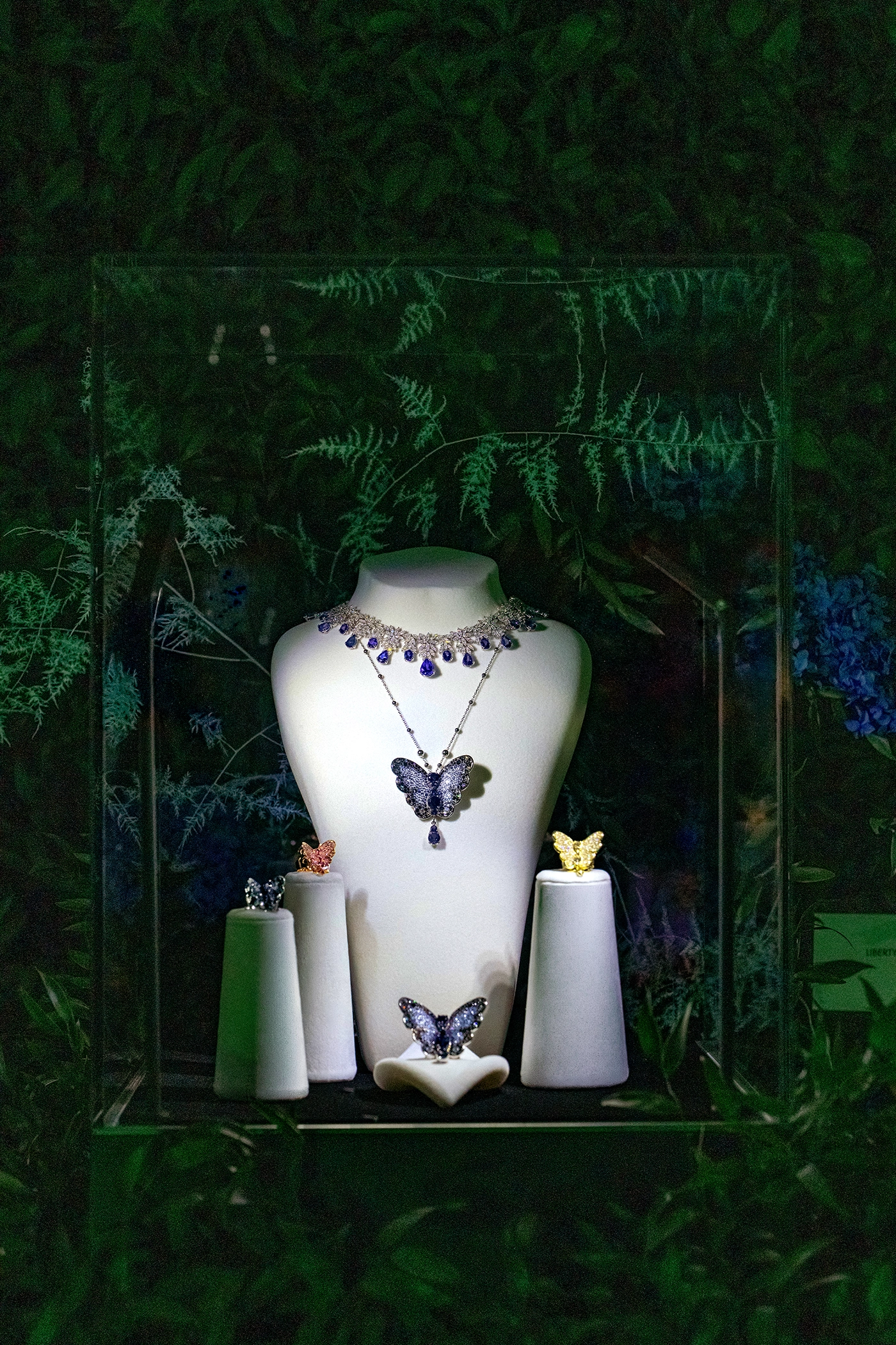 According to the exhibition materials, Secret Garden has been conceived by Eugenia Bruni and Christoph Radl, transforming the West Loggia into a suspended landscape of foliage, fragrance, sound, and reflection. Gems emerge from the vegetation almost as discoveries, while mirrored floors multiply light and greenery to dissolve the boundary between object and atmosphere. It is a poetic setup, but one rooted in a serious curatorial idea: that jewellery can be understood not only as adornment, but as a language of feeling, energy, and transformation.